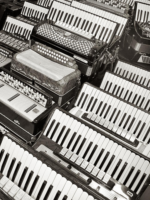Accordians are widespread throughout Europe, Russia, North America, South America and elsewhere. This collection of accordions was for sale in a shop in Kaunas, Lithuania, but could easily be in midwestern America!