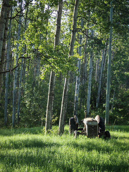 This tractor sits in an open area surrounded by trees and grass. Looks like it hasn't been moved in years. My first thought was that someone parked... more