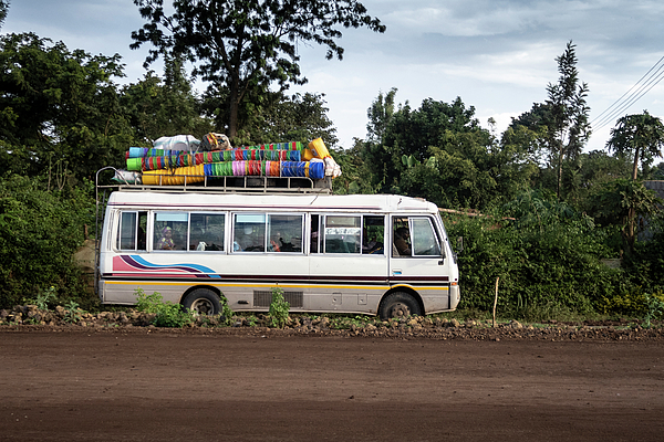 In Arusha, Tanzania, you often see people transporting and carrying goods in plastic buckets. I even saw vendors next to the road selling the buckets. I do not know the backstory behind this bus whose top is loaded with plastic buckets. People of all ages are on the bus, watching out the windows, as was I from my vehicle going in the opposite direction.